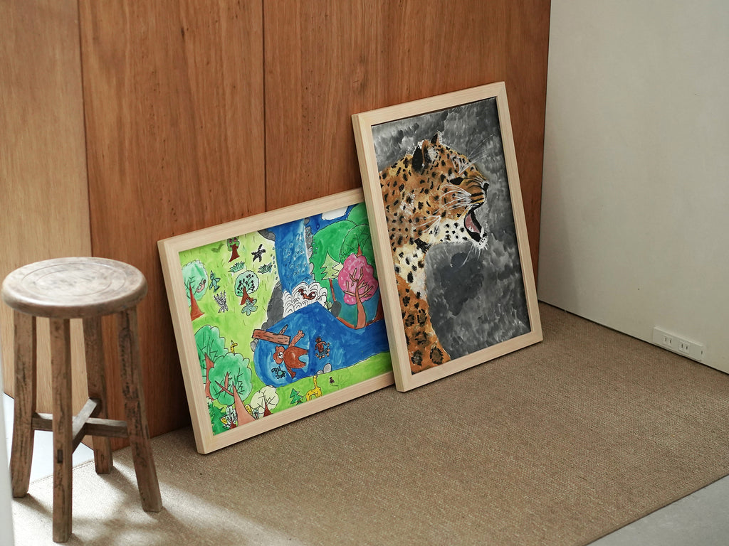 飾るのが難しい立体感のある作品や、画用紙から飛び出すようなコラージュ作品なども、そのままの雰囲気を生かして額装できます。