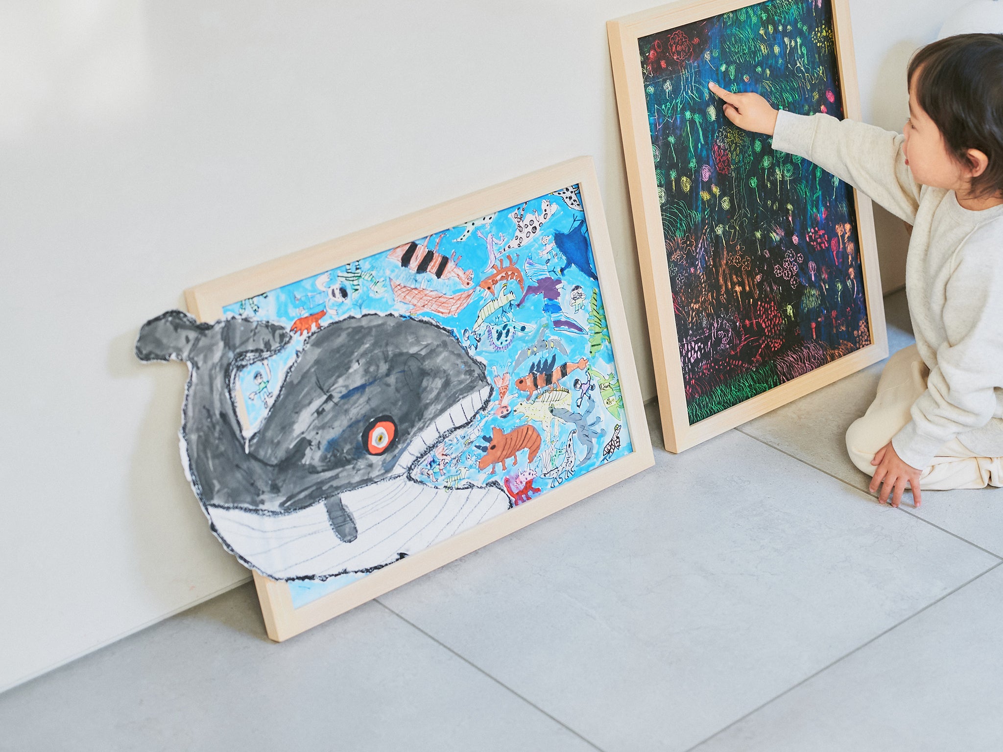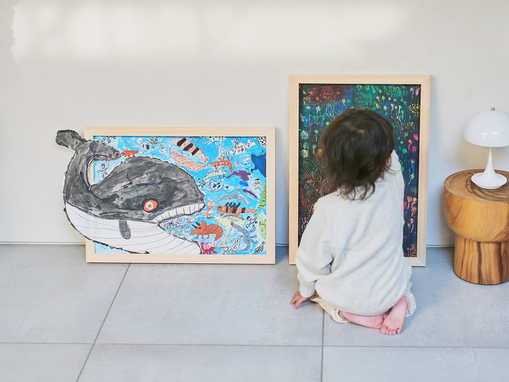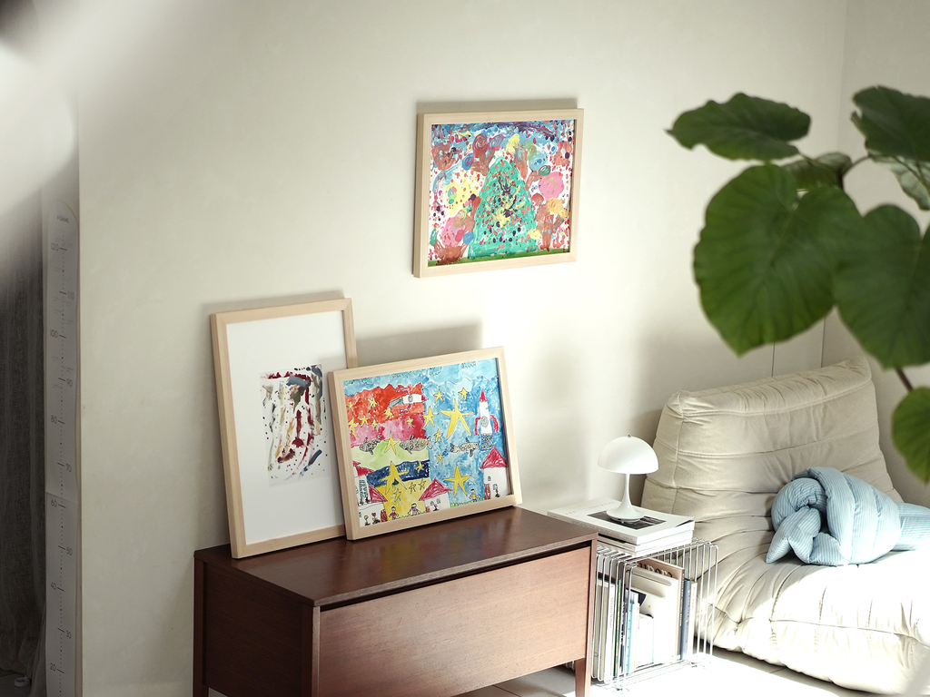 自分の作品が見える場所にあると、子どものうれしい気持ちが広がります。リビングや子ども部屋に飾って、毎日眺める楽しみを。