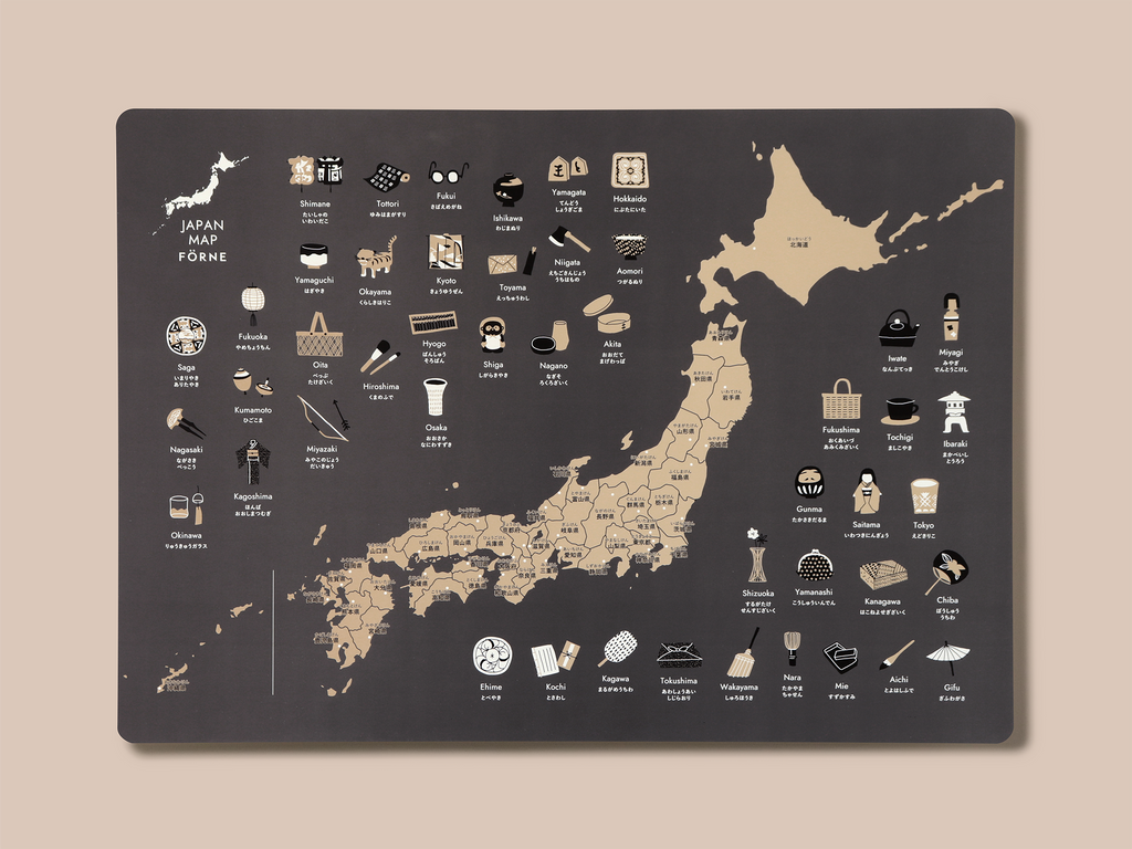 地図の周りにちりばめたイラストは、その土地でつくられる暮らしの道具や工芸品を表現。