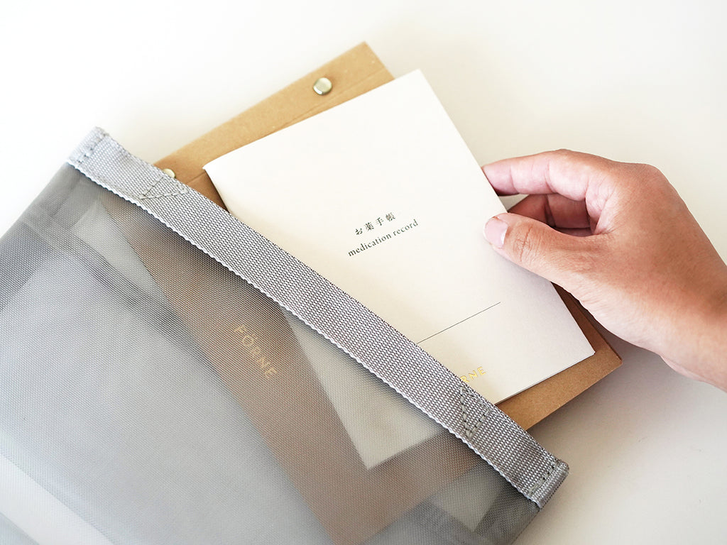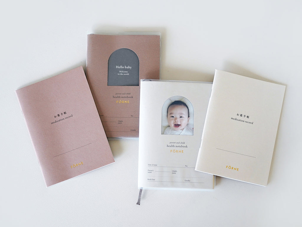 フォルネらしいシンプルデザインのお薬手帳は、カバーにあしらったロゴの箔押しがアクセント。子どもだけでなく大人も兼用したくなるような、おしゃれなアイテムです。