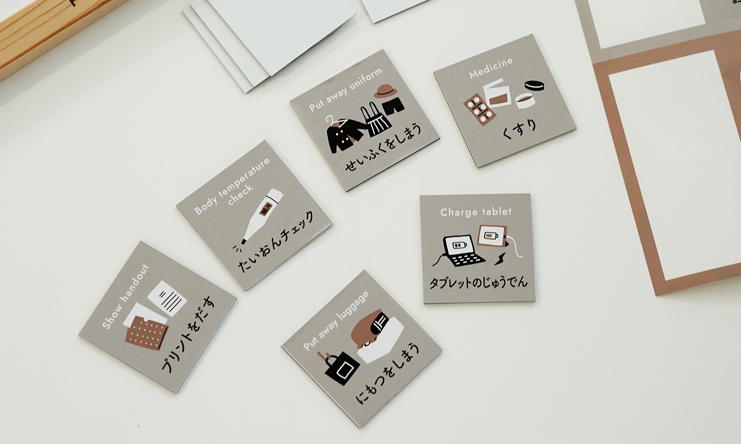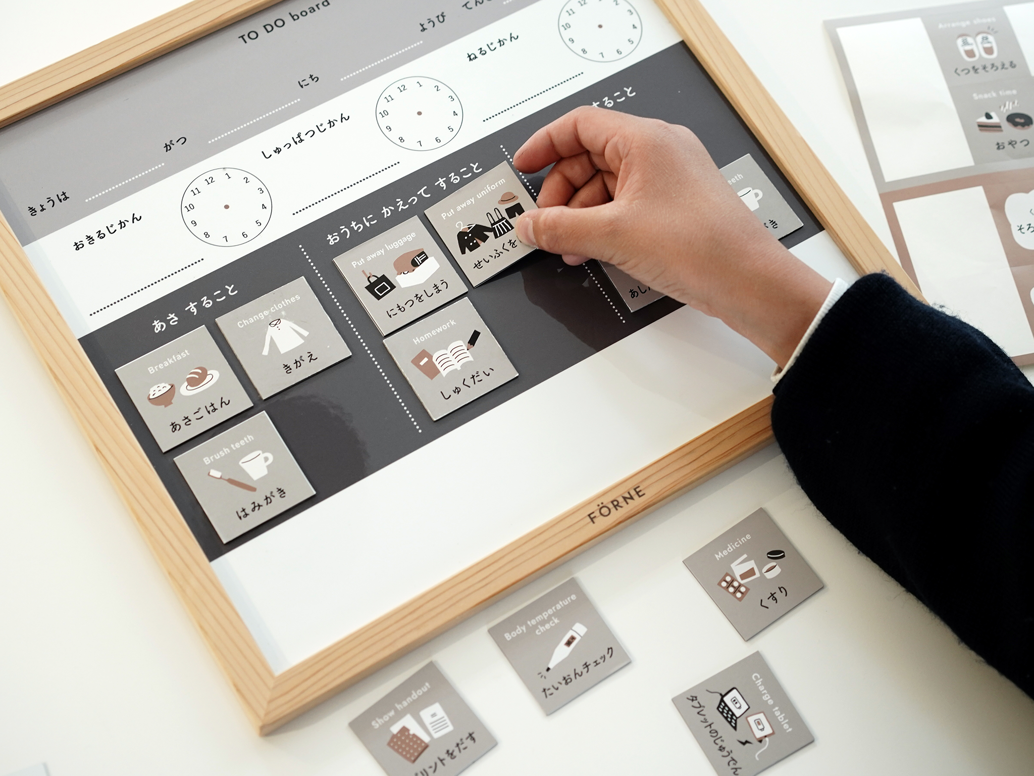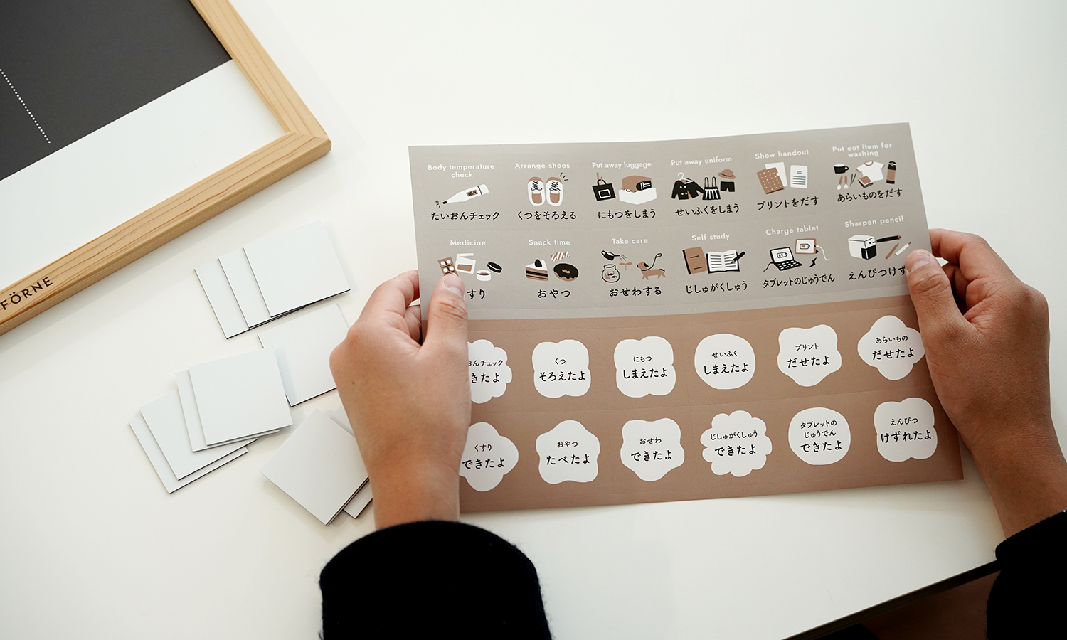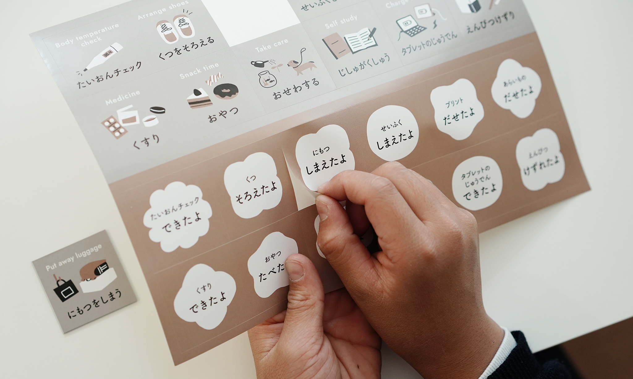 それぞれのシールにイラストが描かれてあるから、子どもがひと目で理解しやすい作り。文字は太めの字体で、読みやすさにもこだわりました。“お支度ボードに付属のToDoはもう全部できるようになった”というお子様にもおすすめです。
