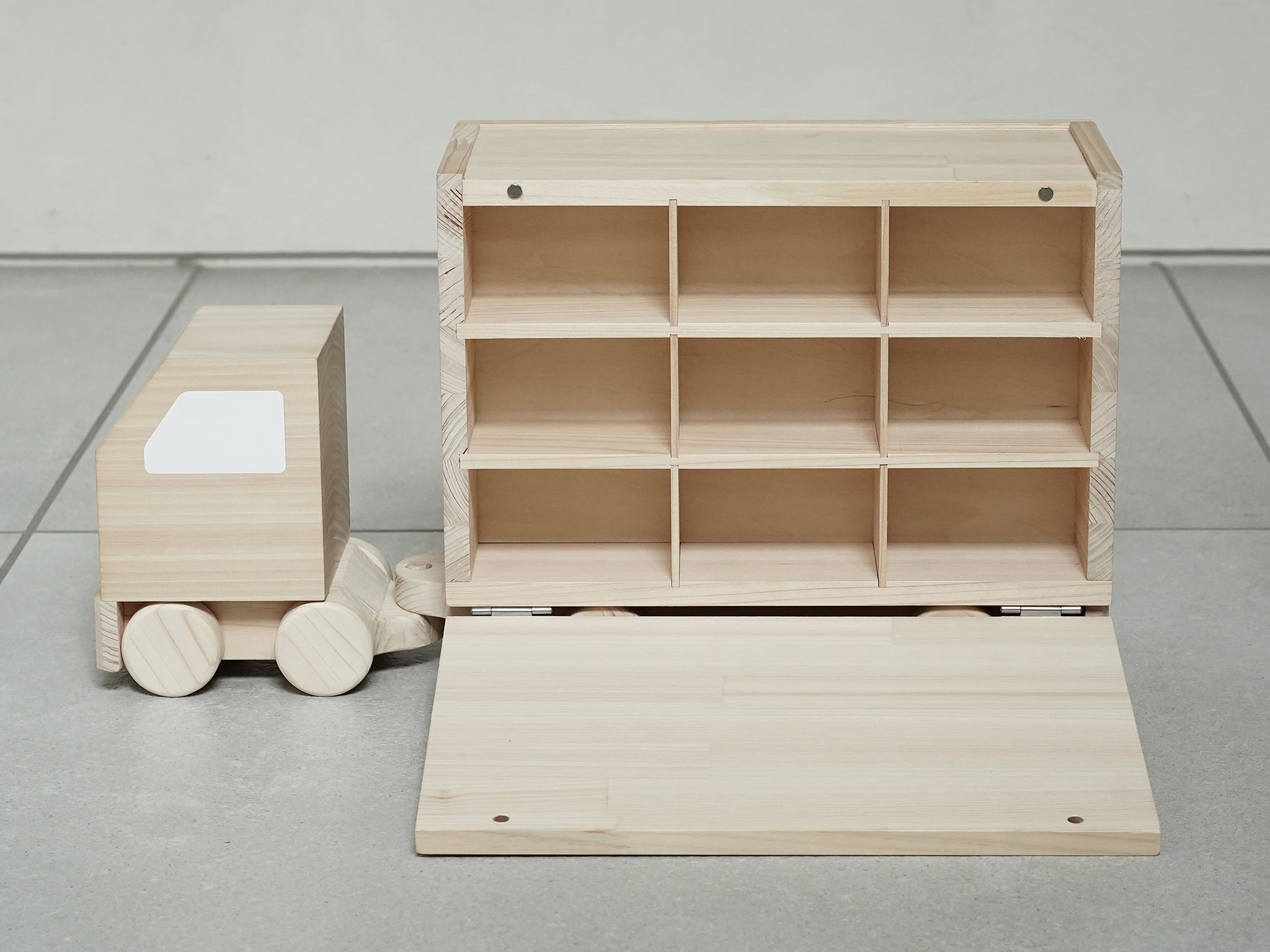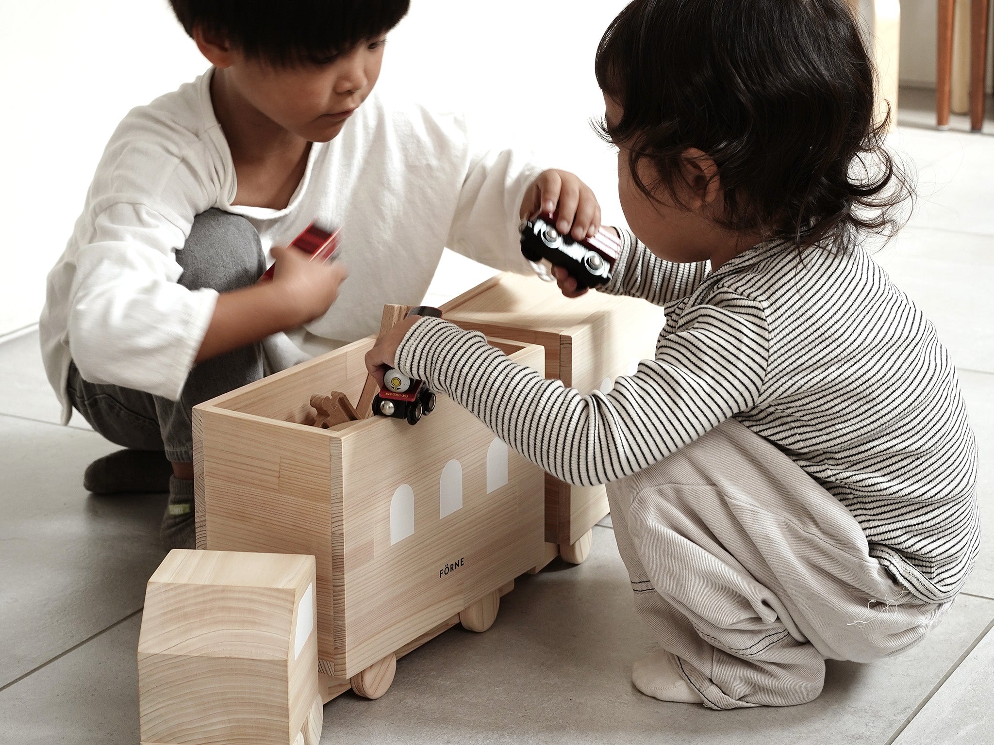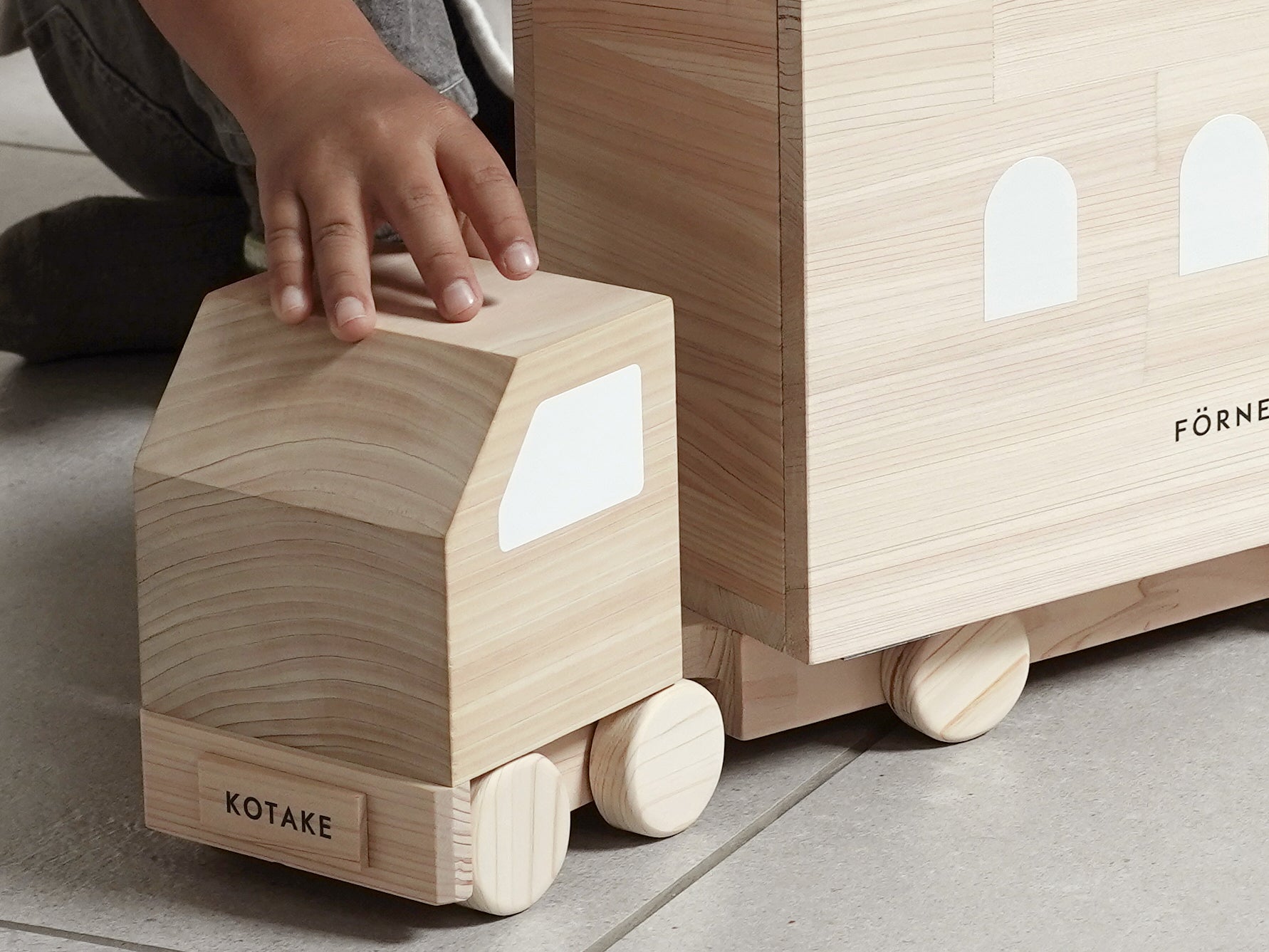ミニカーやはたらく車が好きな子どもに、木のぬくもりを感じられるデザインのおもちゃを──そんな想いから生まれた商品です。