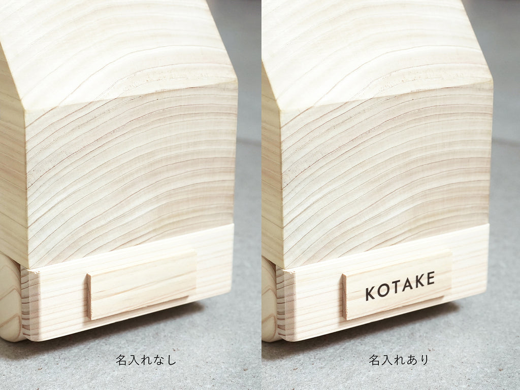 素材には国産ヒノキを使用。すべすべとした手触りで、木ならではの優しい質感を感じられます。ヘッド部分には木目が美しい無垢材を使い、金具はできるだけ少なく目立たないように工夫しながら、愛媛の工場で一つひとつ丁寧に製作しています。無塗装仕上げなので使っていくうちに色が濃くなり、味わい深く育っていくのも魅力です。