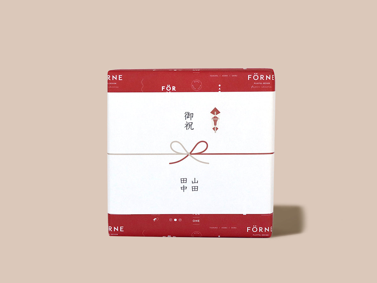 包装紙でお包みし、熨斗掛けします。 熨斗の表書き(御祝、御出産御祝など)と贈り主の名入れについては「備考」欄にご記入ください。